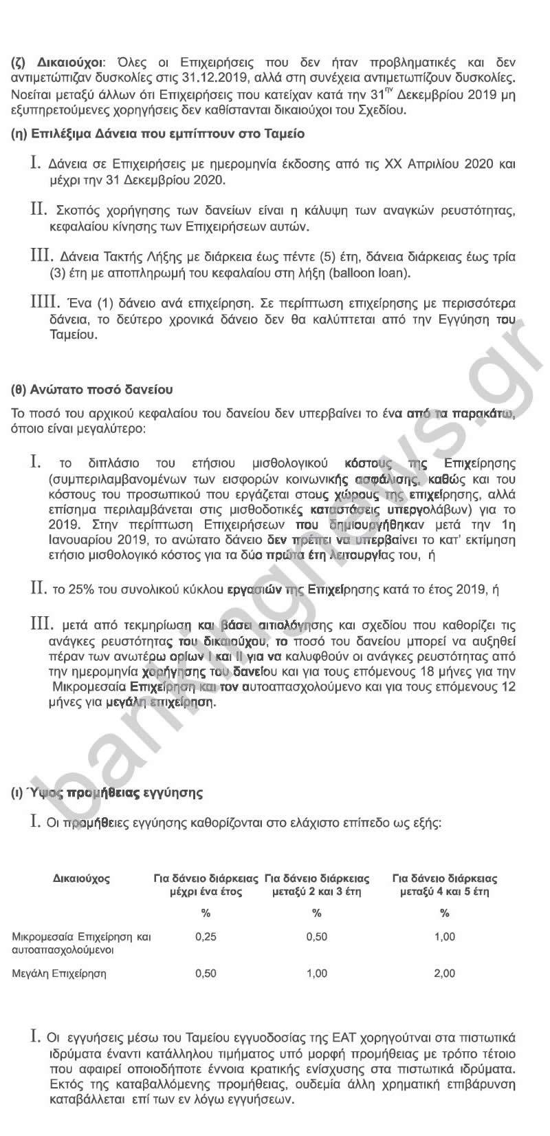 Τα δάνεια αυτά θα ανέρχονται είτε με το διπλάσιο του μισθολογικού κόστους της επιχείρησης συμπεριλαμβανομένων των εισφορών είτε στο 25% του τζίρου αυτής.